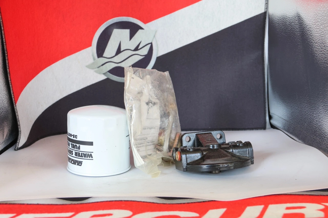 Le filtre séparateur carburant Mercury Alu 35-802893Q4 est un kit complet avec tête en aluminium. Il protège le moteur en séparant l’eau et les impuretés de l’essence.
