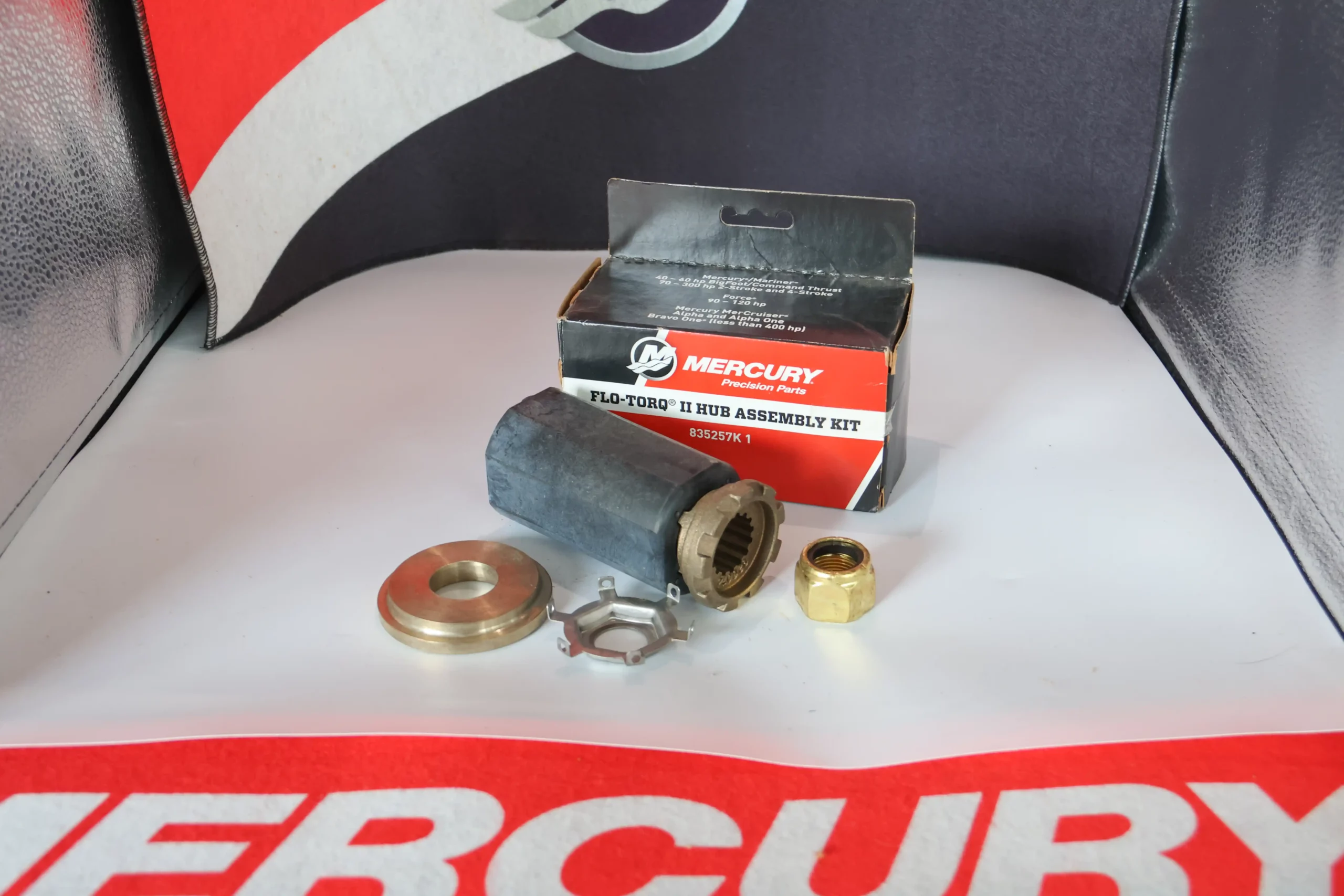 Le kit moyeu Flo-Torq II Mercury Mercruiser 40-300 CV 835257K1 est un système de moyeu amortisseur universel couvrant la gamme Mercury et Mercruiser de 40 à 300 CV. Il absorbe les efforts de choc lors des impacts de l’hélice.