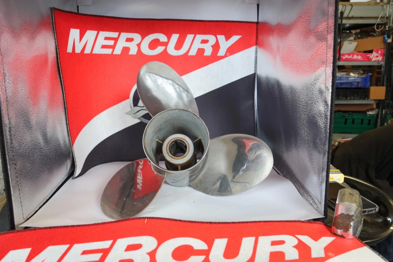 La structure Mirage Plus en inox conserve son potentiel : une réfection par un atelier d’hélices (redressage, équilibrage) peut redonner une seconde vie à cette pièce coûteuse au neuf.